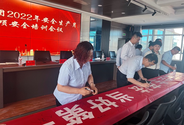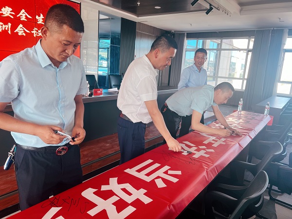 會(huì)后集團(tuán)全體員工在安全生產(chǎn)月主題橫幅上簽字,承諾要切實(shí)把安全生產(chǎn)責(zé)任扛在肩上、扎在根上、落在實(shí)處,堅(jiān)守全員都是安全生產(chǎn)的領(lǐng)航兵,切實(shí)做好安全領(lǐng)域的各項(xiàng)防范和管理工作。