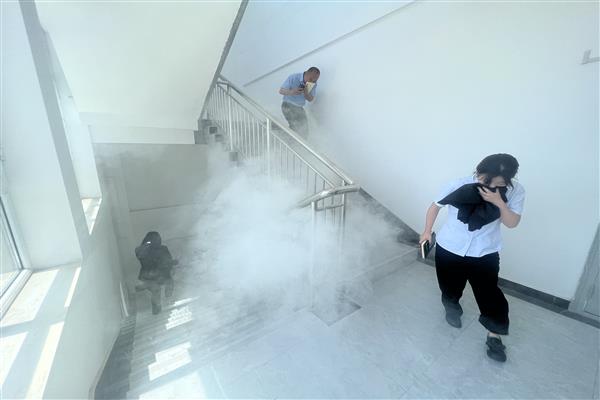 全體參會(huì)人員在安全生產(chǎn)月橫幅上承諾簽名。隨后,集團(tuán)邀請億安消防的教官作安全專項(xiàng)知識培訓(xùn),并組織應(yīng)急疏散演練。