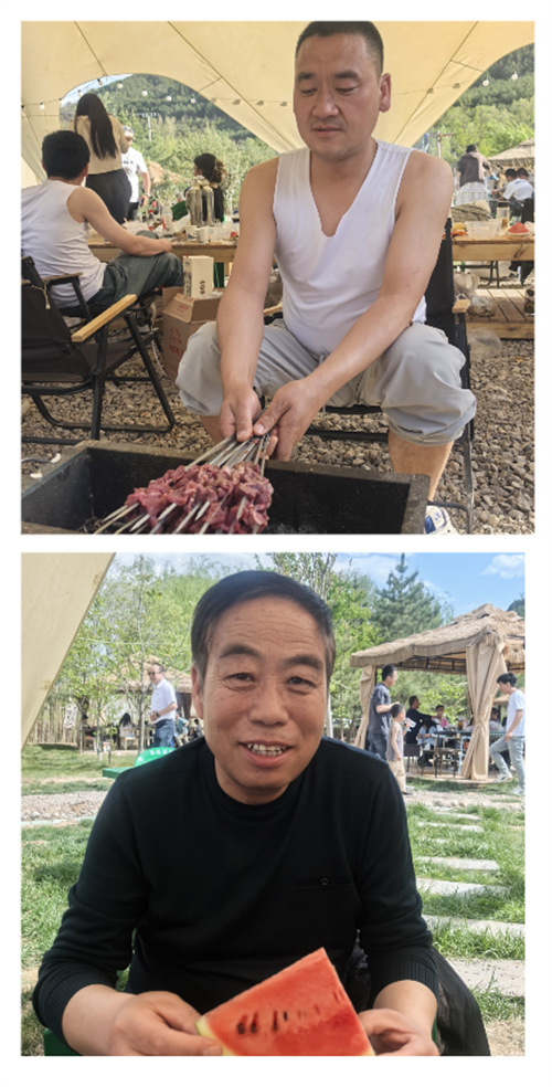 登頂后的喜悅尚未褪去,大家便奔赴西溝村A露營基地,開啟超治愈的燒烤派對!鮮嫩的肉串在烤架上滋滋作響,香氣四溢;金黃的雞翅、新鮮的蔬菜,在同事們的協(xié)作下變成一道道美味佳肴。有人化身“燒烤大師”大展廚藝,有人主動負責后勤保障,歡聲笑語與煙火氣息交織,勾勒出“振興大家庭”的溫暖畫卷。